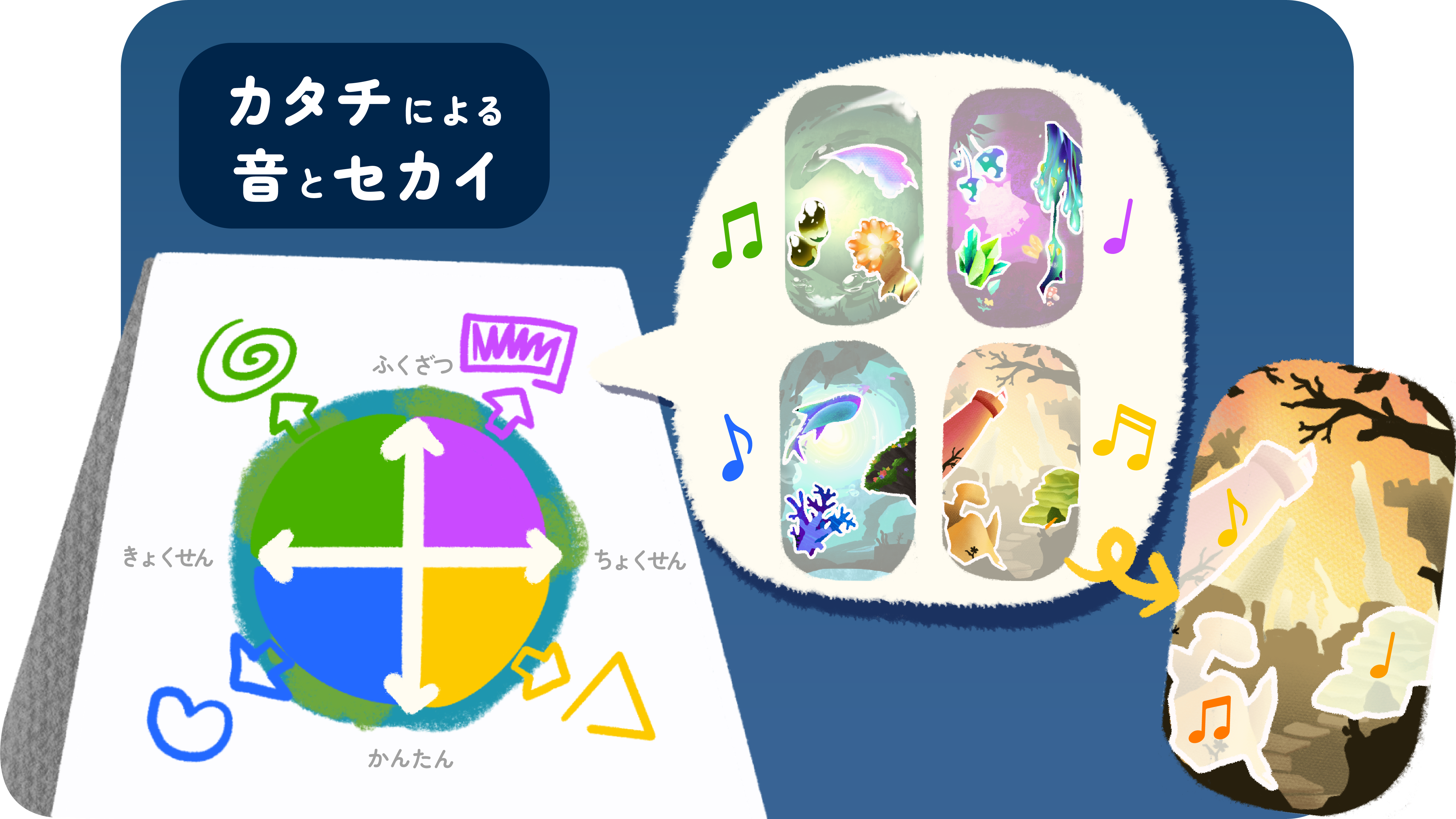 音と色の変化を通して、“セカイを明るくする体験”を楽しめます。
