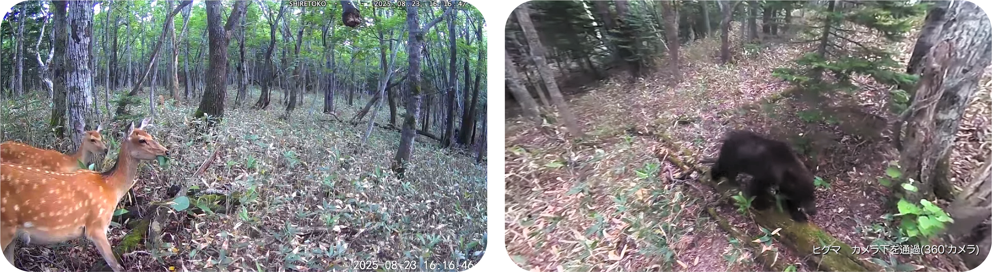 イベントでは、2022 年から2025 年にかけて「360°カメラ」および「動物観察カメラ」で記録された映像を再編集し、オンライン上と知床自然センター内のレクチャーコーナーで公開いたします。